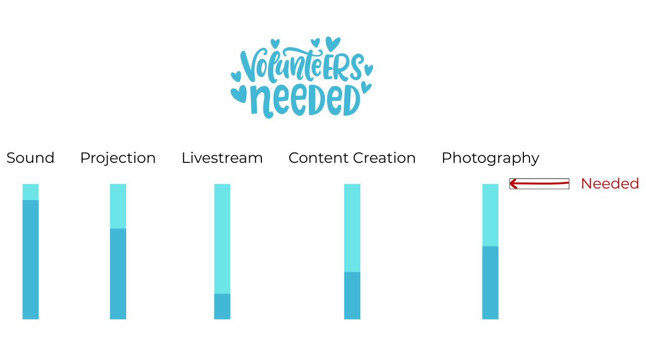 If you’re interested in sound, livestreaming, screens, photography, content creation, fill out the form below or chat with us after the service.